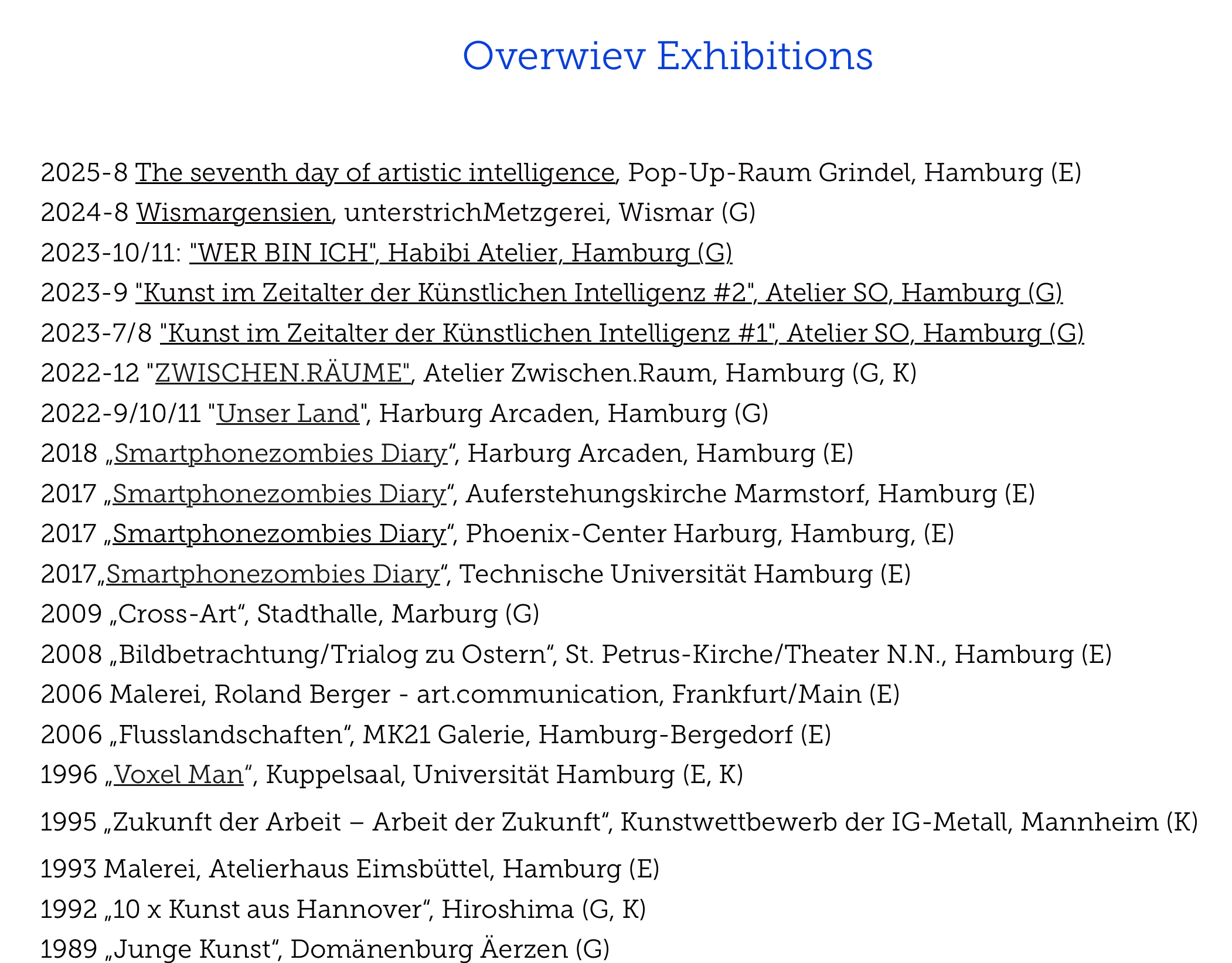 Exhibitions - 1989 bis 2023