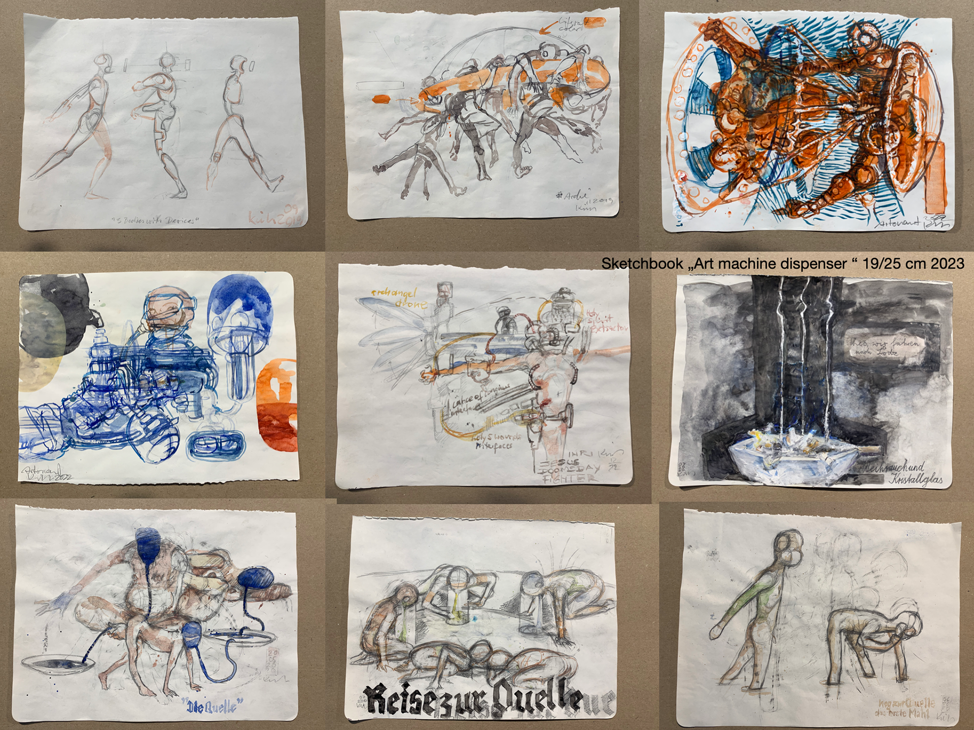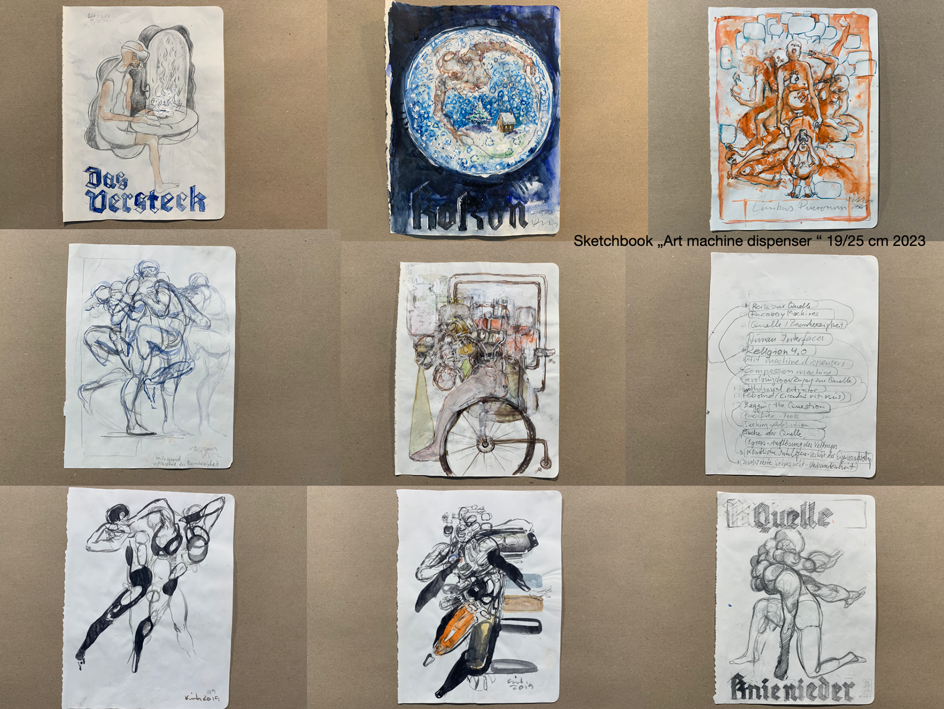 Skizzenbuch-Seiten zum Werkzyklus Künstlerische Intelligenz (KI)